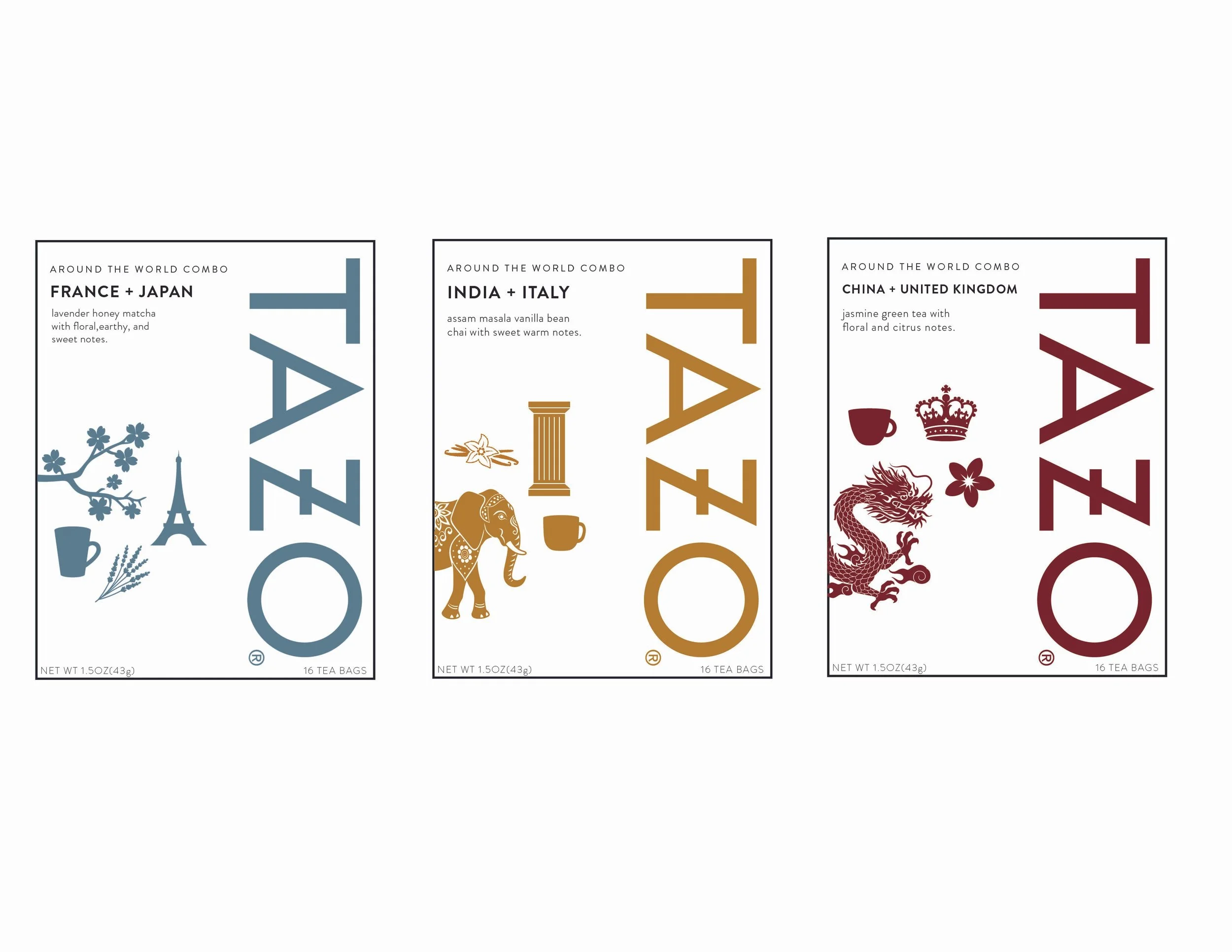 The redesigned packaging reflects this concept, incorporating a unique color palette, illustration style, and typography for each blend while maintaining Tazo’s brand identity. The final result celebrates cross-cultural connection and invites tea drinkers to explore bold, unexpected flavor journeys from around the world.